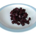 - Remove stems and roots of beets and peel and wash. Dice the beets into 1 cm cubes.
